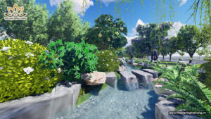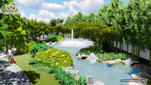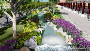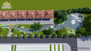 Trong tổng thể kiến trúc Dự Án Hoa Viên Bình An (Long An), Suối Thanh Long không chỉ là dòng nước uốn lượn mà còn là trục phong thủy chủ đạo, hội tụ sinh khí đất trời theo quan niệm Á Đông. Sự hiện diện của dòng suối tạo nên thế “long mạch” vững chãi – yếu tố quyết định giúp Hoa Viên Bình An trở thành công viên tưởng niệm sinh thái đẳng cấp nhất miền Nam.